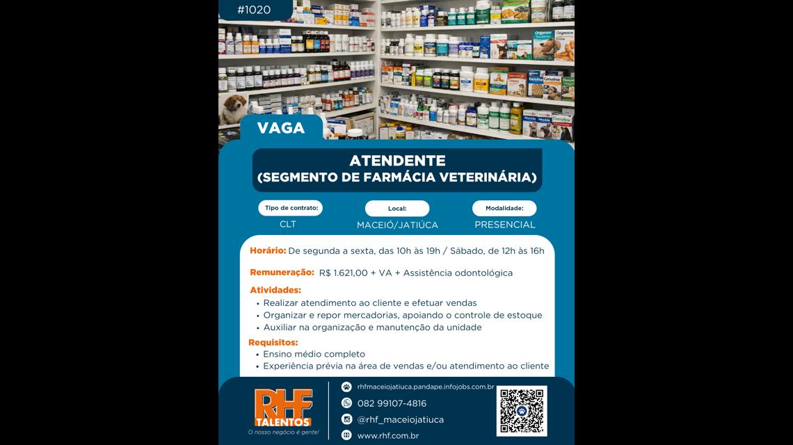 #1020 ATENDENTE (SEGMENTO DE FARMÁCIA VETERINÁRIA)